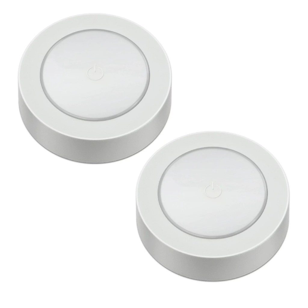 I noticed our kitchen isn’t quite as bright as I’d prefer, so I picked up these puck lights from Walmart. At $4.97 for a pack of two, they made my kitchen so much brighter!